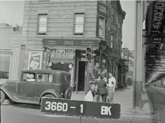 Northeast corner, Pennsylvania Avenue and Fulton Street, 1940 Harvey Shapiro's grandfather owned the corner store seen in the image and he offered some memories; "My grandfather's store was on the corner of Pennsylvania Ave and Fulton St. He had the old soda fountain, sold cigars (big humidor that I had to replenish the water tray) comic books and magazines, canned goods, etc. He helped many people if they didn't have enough money. My Aunt Rose used to run the store with him. Spent every afternoon there when I was in kindergarten ( half a school day at P.S. 76 back then.) Knew many of the police, as they'd come into the store to have a sandwich, coffee, warm up in winter, or use the bathroom.My Aunt Rose and I used to walk the newspapers around the corner to the firehouse on New Jersey Avenue. Hook and Ladder #7.. They all came to know me as a little boy, and when they returned from a call, they would turn onto Fulton St. from Pennsylvania Ave. and honk the horn and ring the bell as I stood by the large glass window waving, saying "they're my friends" |